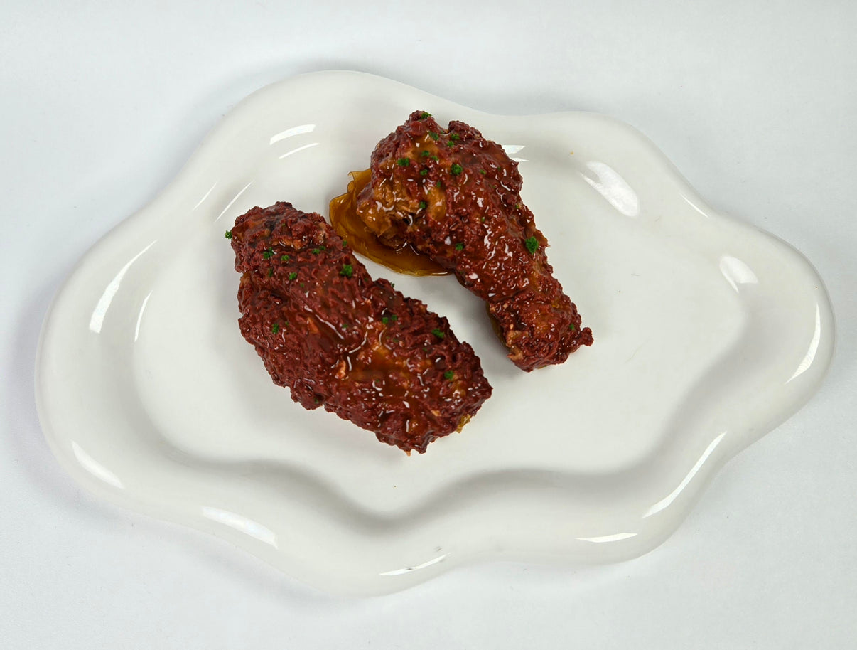 You’ll get 2 pieces per order (1 wing + 1 drumstick), glazed in mouthwatering barbecue sauce and squish-ready straight outta the fryer... uh, mold.